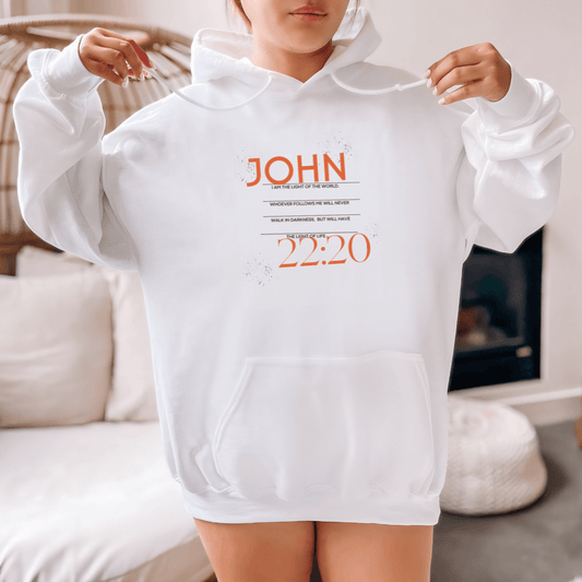 ELEVATED SPIRIT | JOHN 22:20 WHITE CHRISTIAN HOODIE