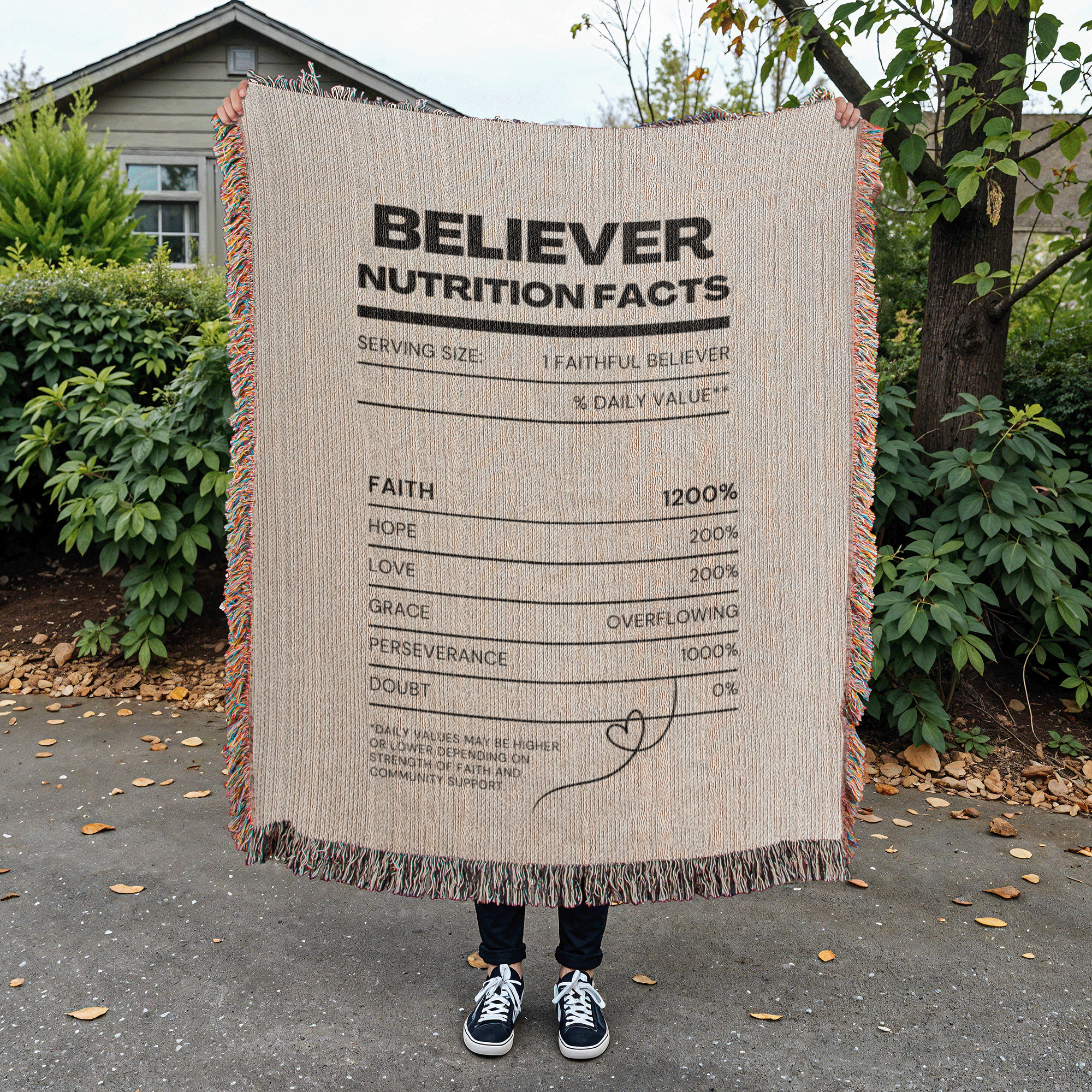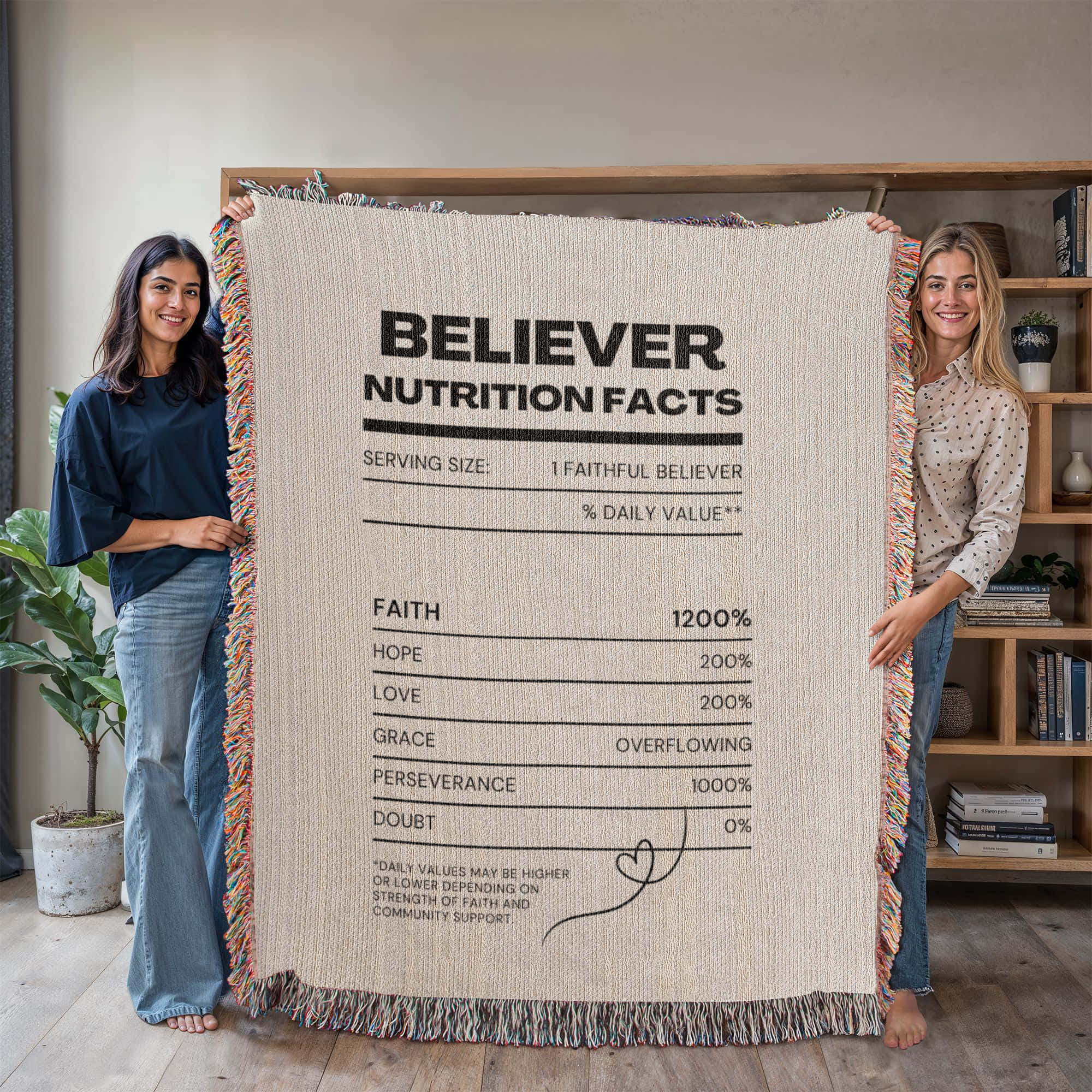 BELIEVER NUTRITIONAL FACTS - COZY FAITH FILLED WOVEN BLANKET